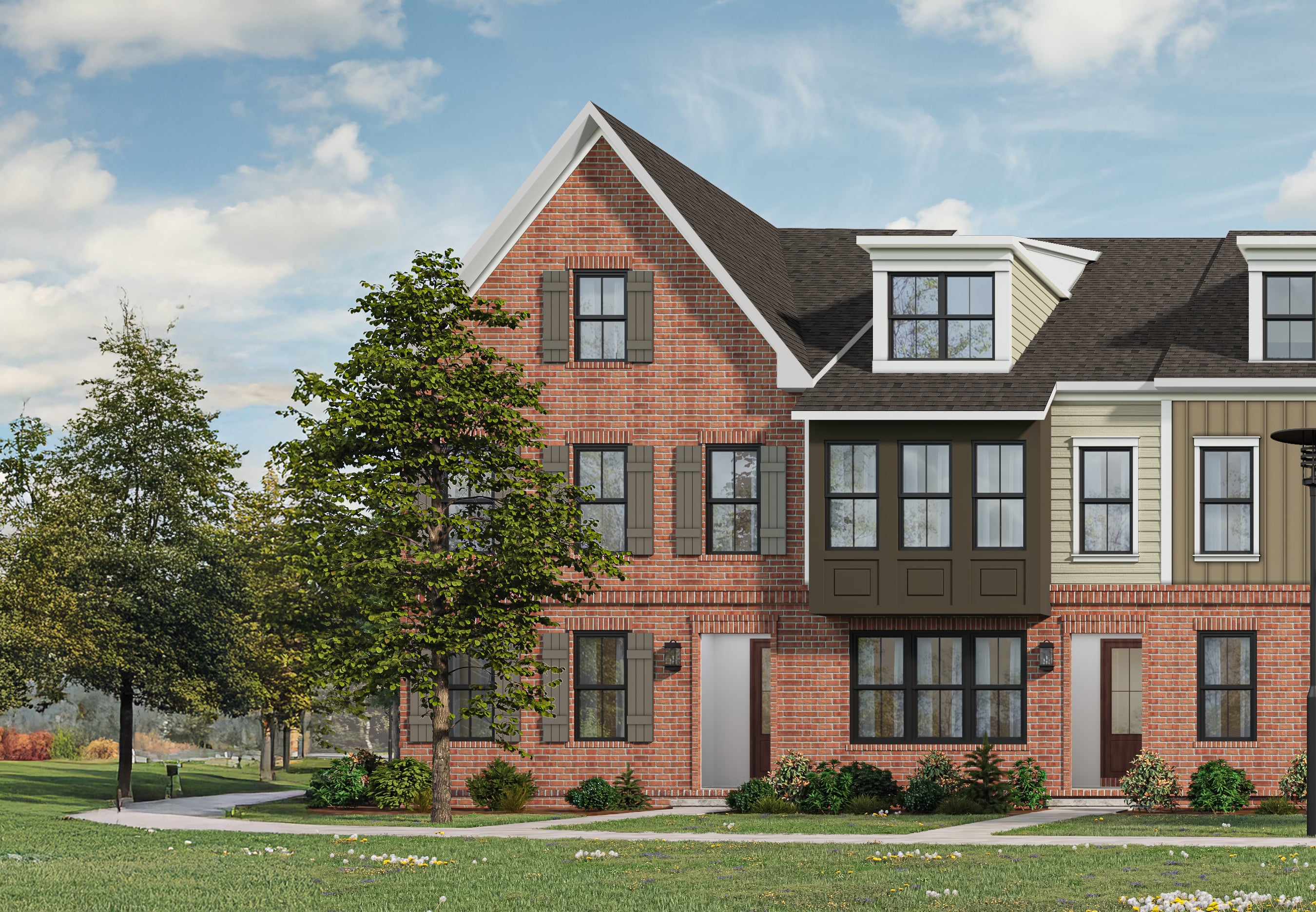 Located along the scenic east side of The Marais at Konterra, the Edge Townes offer a sophisticated blend of architectural charm, modern functionality, and open-air living. Just steps from lush green space and a winding walking trail, these homes offer a peaceful retreat with unmatched connection to the outdoors.